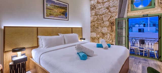 Hideaway in Paradise! This room, classified as a Deluxe Double Room with Balcony, is one of our quietest room, overlooking Triq il-Madonna tal-Għar, just beside the old bakery. Immerse yourself in Mellieħa’s authentic village atmosphere from your private balcony.