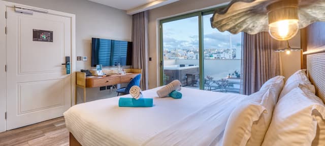 The zest of the Mediterranean in a Deluxe Double Room, at your fingertips! Soak up the sun and create lasting memories with friends and family, with a spacious terrace and communal 5m x 3m communal pool on your doorstep!