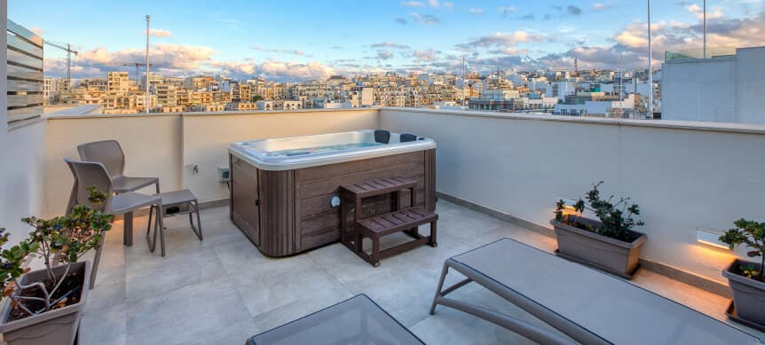 Escape the mundane and create unforgettable memories from your spacious private terrace, complete with a private hot tub and panoramic views.