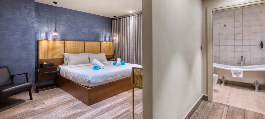 This is the only room within the DOMS Boutique Hotel that comes with a free standing bath instead of a shower, and with a stunning rooftop pool and viewing deck located on your floor, this Double Standard room packs the most value!